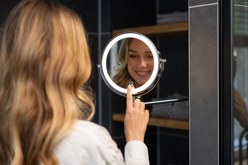 Het HD-spiegeloppervlak biedt een heldere reflectie, waardoor elk detail haarscherp zichtbaar is. Dit zorgt voor een luxe uitstraling en geeft elke ruimte een stijlvolle sfeer. Zet je de spiegel naar het licht toe, zal het licht nog mooier uitkomen in de spiegel.