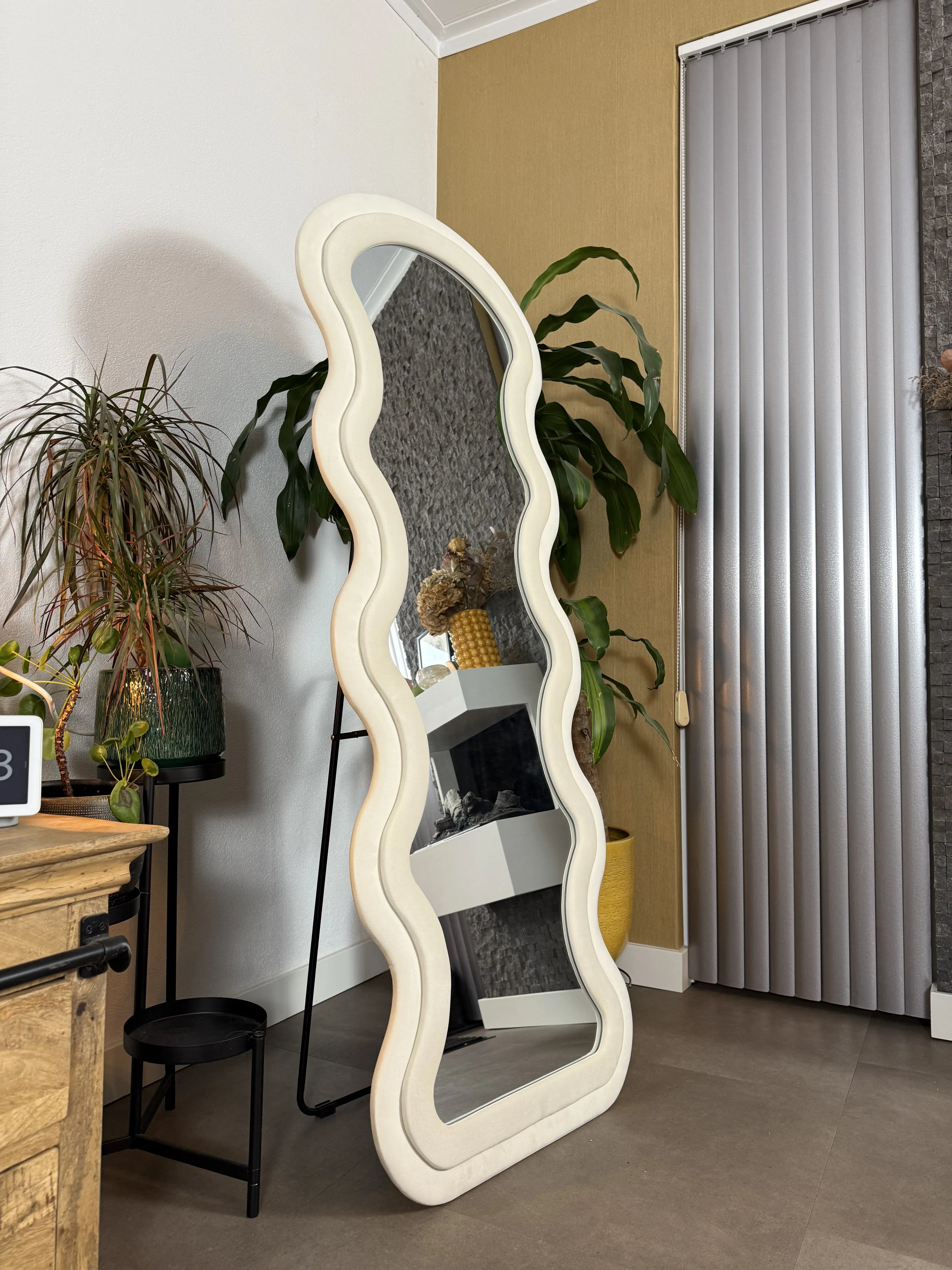 Geef je interieur een verfijnde upgrade met de Wavy Teddy Spiegel. Het golvende design en de luxe fluwelen afwerking zorgen voor een stijlvolle en serene uitstraling in elke ruimte.